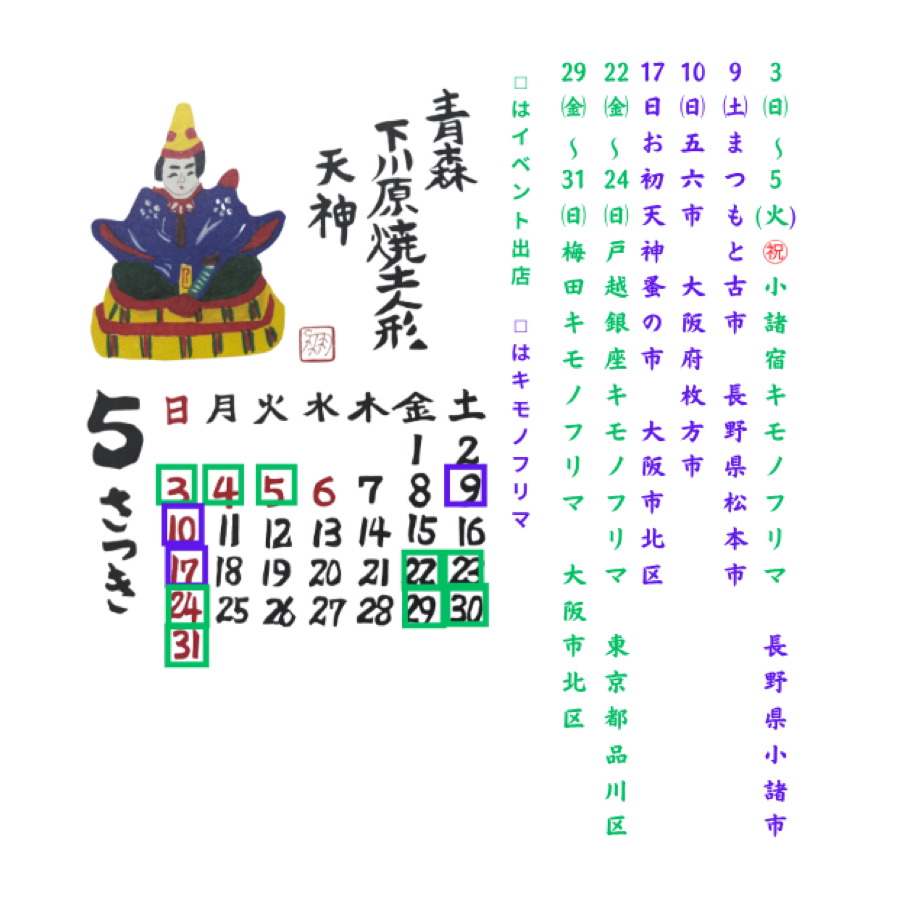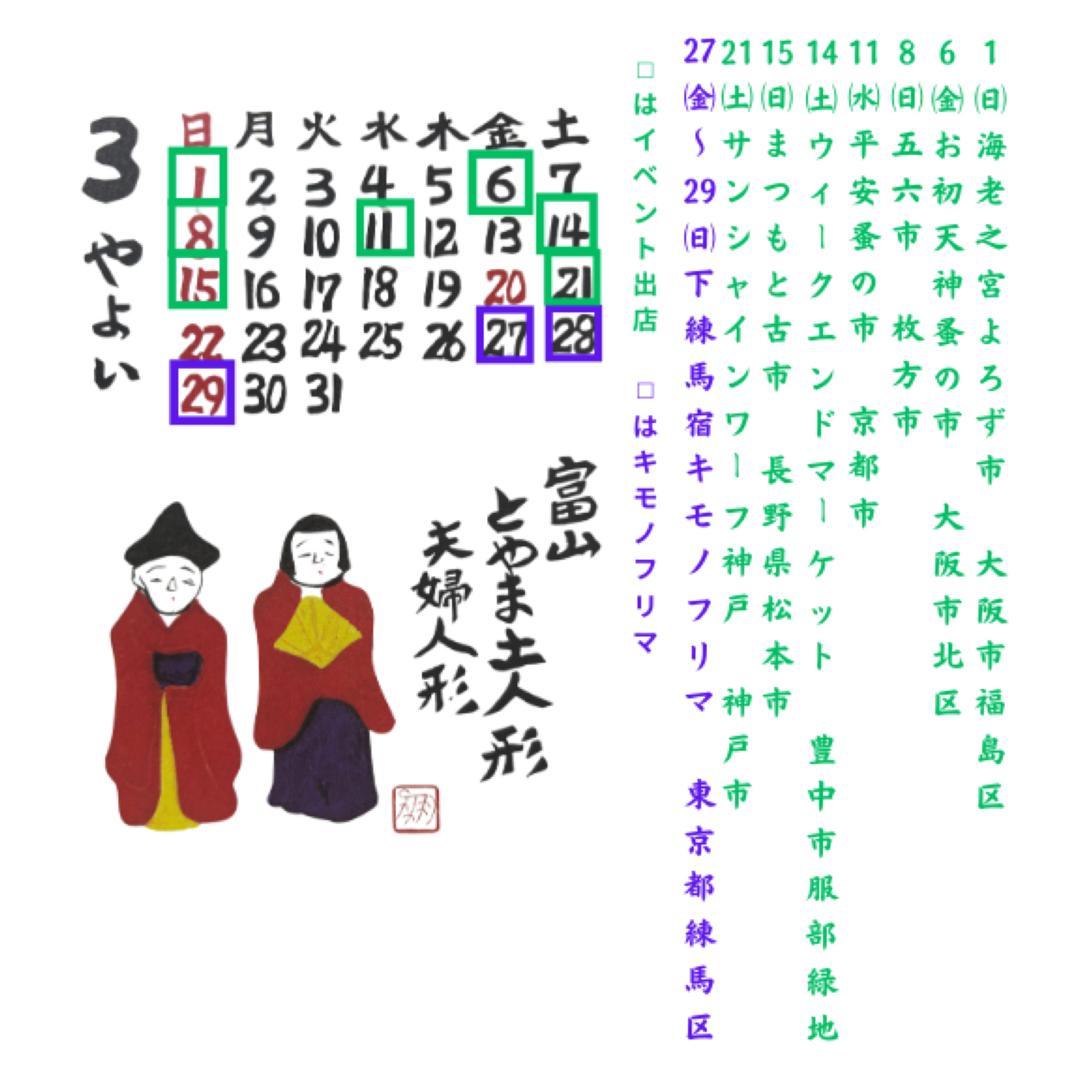 こちらのカレンダーの日程も参考にお願い致します。気楽に先々のご予約、ご連絡くださいませ。